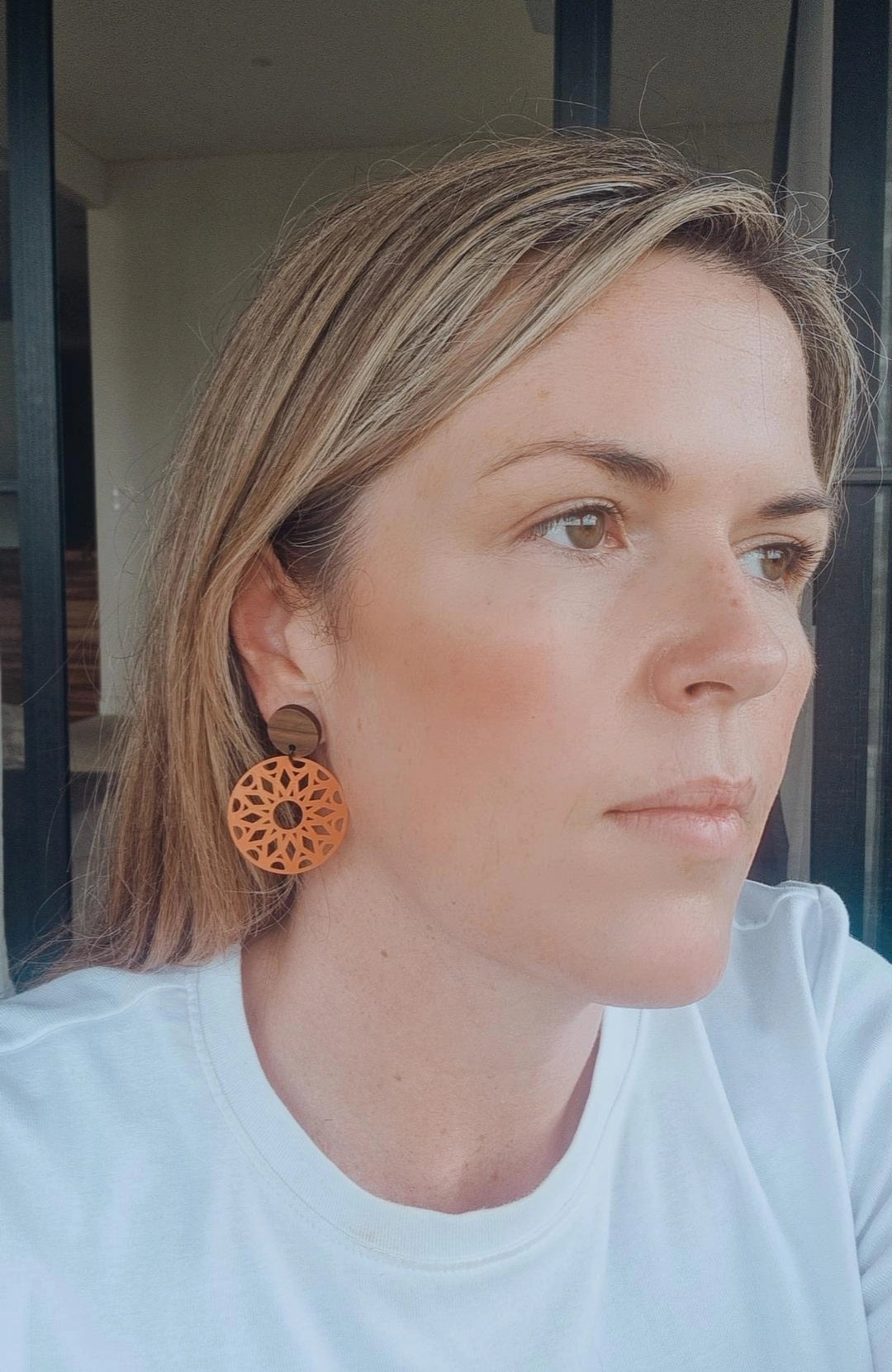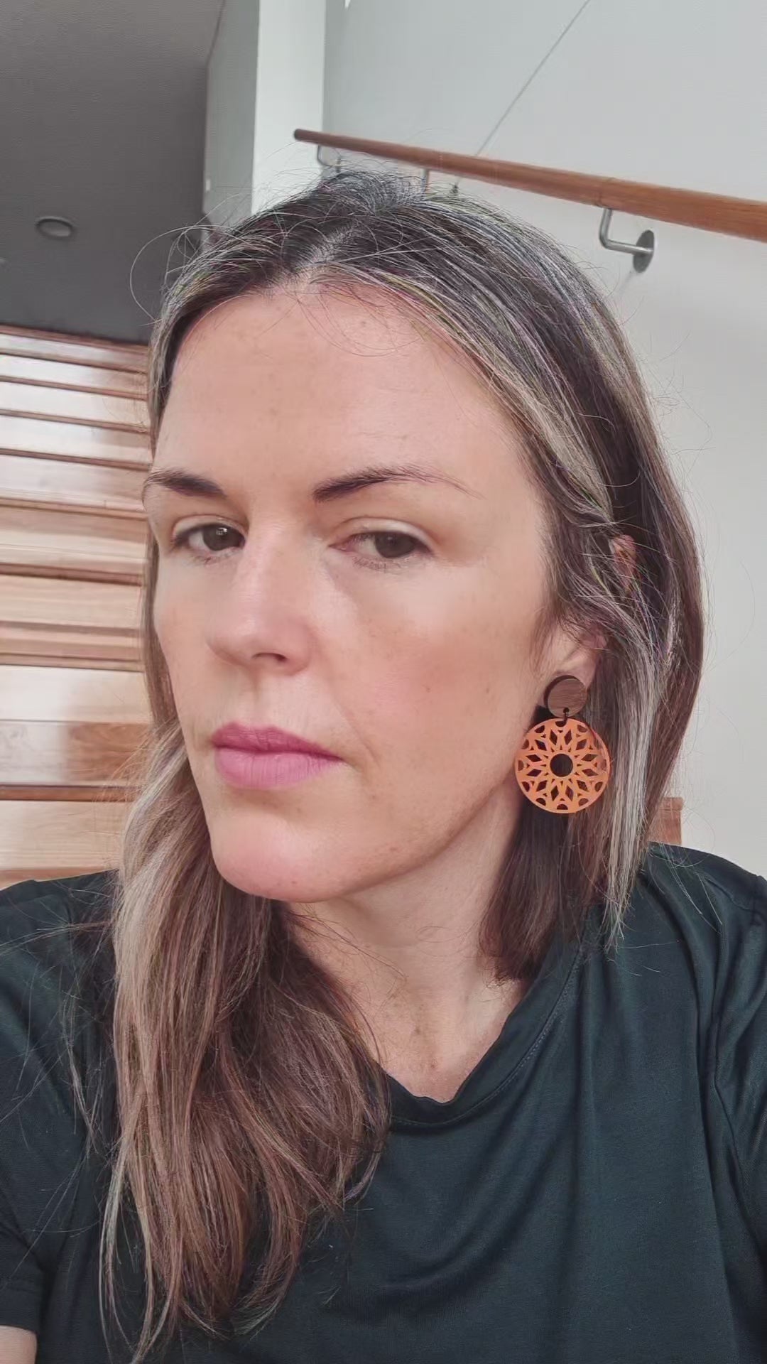 They feature beautiful timber/resin tops with hypo- allergenic posts which mean they are sensitive ear friendly.